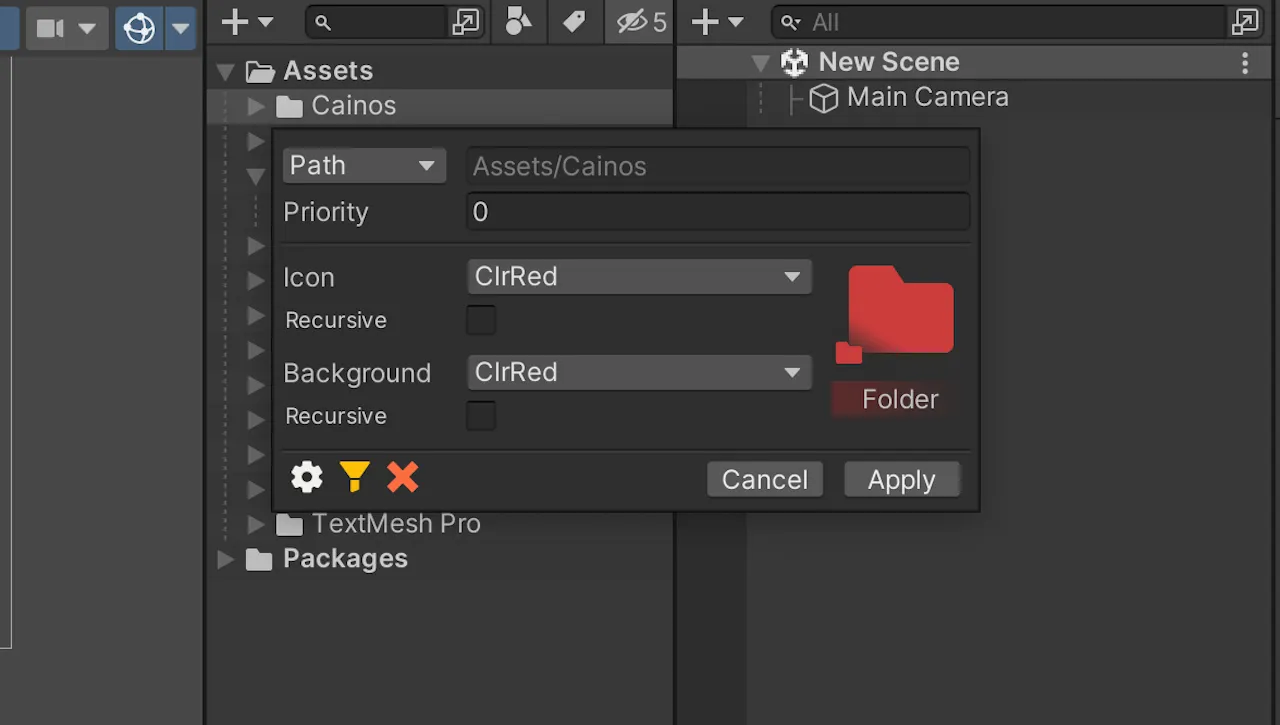 패키지 매니저를 통해 RainbowFolder를 프로젝트에 import 하셨다면, 바로 사용할 수 있습니다. 색상이나 아이콘을 변경하고 싶은 폴더를